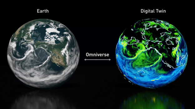 “NVIDIA 将通过我们的 Earth-2 (全球第一台 AI 数字孪生超级计算机)来应对这一巨大挑战,并发明新的 AI 和计算技术,加速实现十亿倍的性能飞跃。”