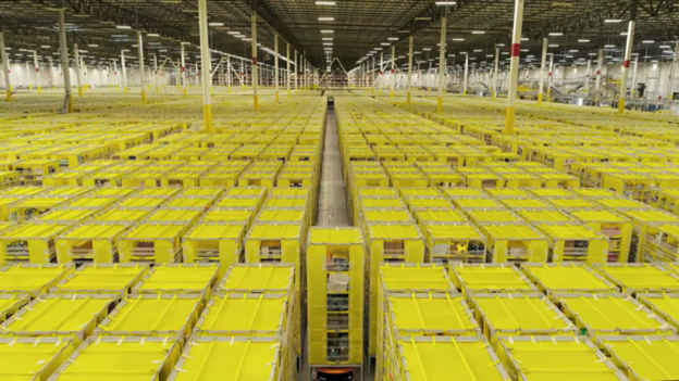 他还展示了亚马逊如何使用 Omniverse Enterprise “来设计和优化其无与伦比的订单履行中心。”