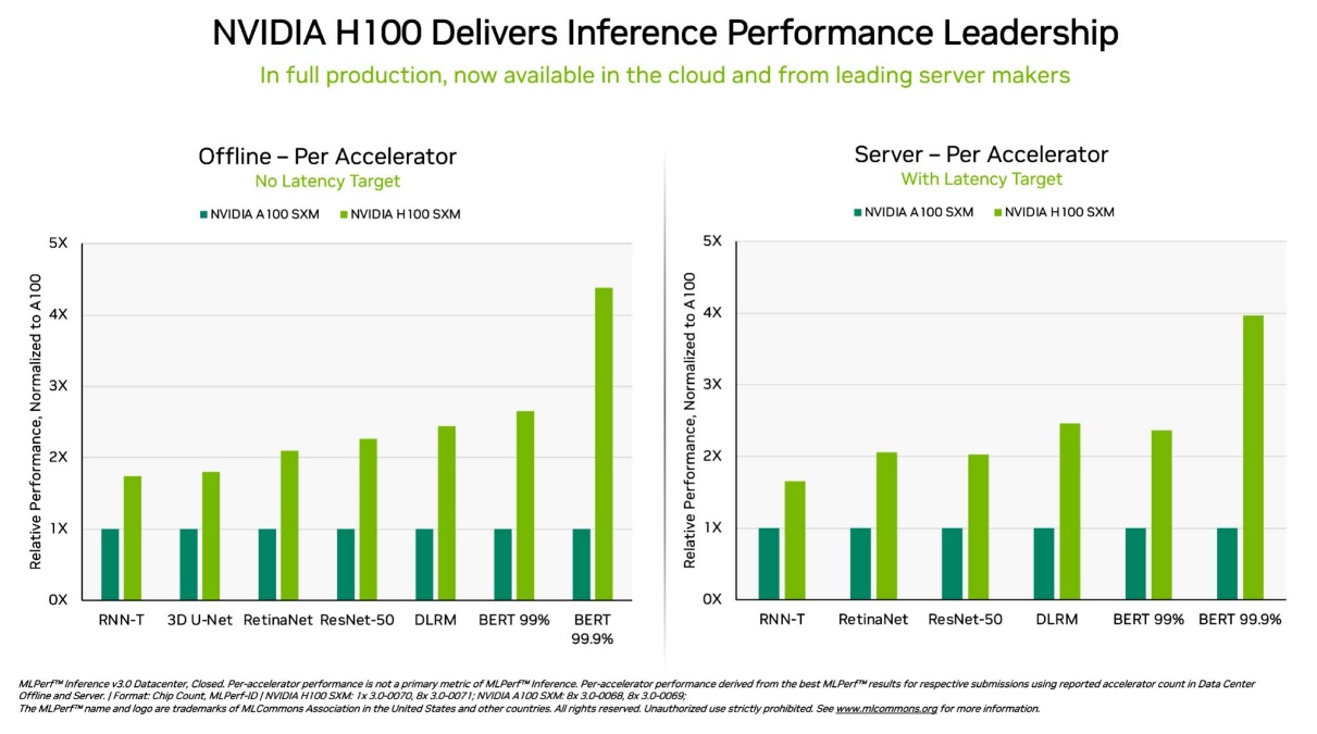 作为独立的第三方基准测试,MLPerf仍是衡量AI性能的权威标准。自MLPerf诞生以来,NVIDIA的AI平台在训练和推理这两个方面一直展现出领先优势,包括最新发布的MLPerf Inference 3.0基准测试。