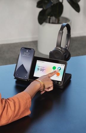 Webex Desk Hub不是我们所熟知的用于共享办公桌的简单设备。因为现在,越来越多的企业提倡不固定办公工位。Webex Desk Hub正是为真正全新的工作方式而构建的。它可以轻松地让任何可用桌面成为个人空间。这些新设备功能强大,不仅能够实现高质量的视频会议和手机通话,同时允许连接所有你信任的设备,如相机、耳机、显示器、笔记本电脑和移动设备。它还支持通过笔记本电脑、门卡或手机预定桌面,验证身份。