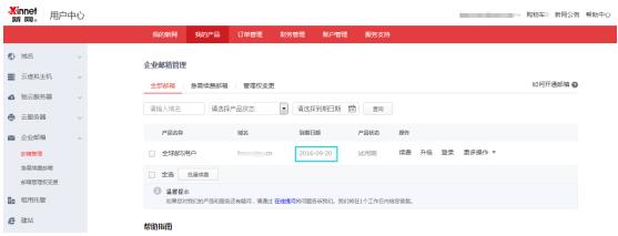 成功绑定域名后,可以看到全球邮5用户的试用已经生效,体验期为三个月。