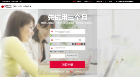 首先,访问全球邮产品页(http://mail.xinnet.com/),申请“免费试用三个月”。填写基本信息后即可申请,新网会员可以直接登录后申请试用。