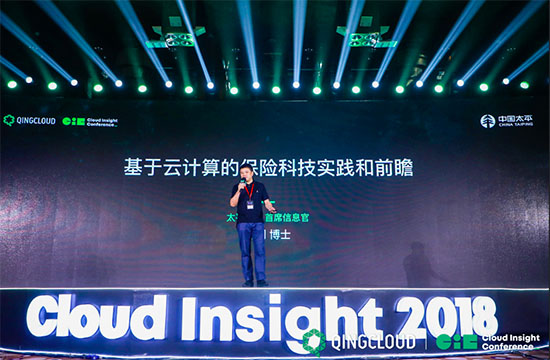 作为集团云代表,太平保险首席信息官熊明在演讲中指出:“太平保险构建的面向太平集团、以高效的应用交付和运营支撑为目标的统一云计算平台——太平云,正是基于QingCloud集团云。太平云在应用即服务领域及自动计费领域达到行业先进水平,体现了IT资源服务化的先进理念,为太平保险集团打造了一艘数字化的航空母舰。”