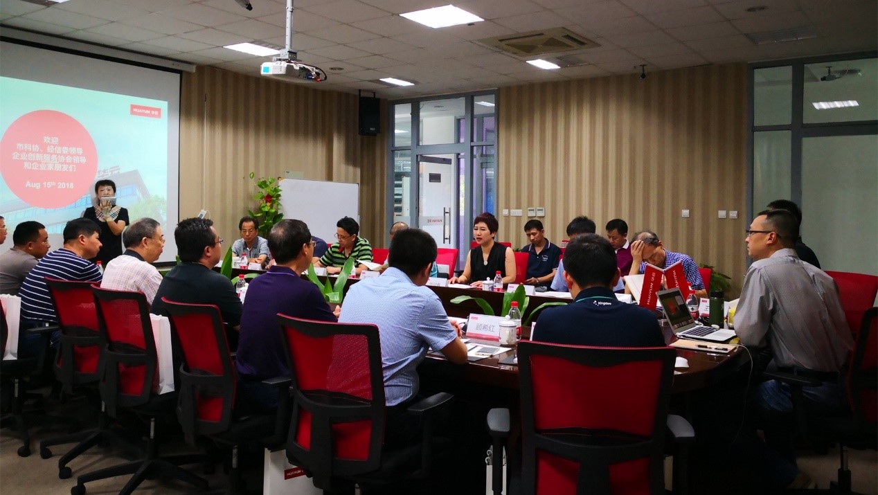 来访企业来到了华云数据集团无锡总公司,参观了华云数据展厅,无锡企业创新服务协会会长华杰做了发言,由华云数据集团总裁办总经理华迎春、总裁助理吴小华接待了来访企业,进行了“制造企业智用云”专题讲座,无锡企业创新服务协会名誉会长陆士度做了总结。