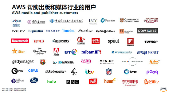 无论是电子图书、新闻出版、在线课程,还是直播点播,AWS都有广泛的成功案例。国内外知名的出版机构客户包括Pearson、Wiley、新闻集团、新闻周刊、哈佛商业出版社、剑桥大学出版社、今日头条、中国图书进出口(集团)总公司、清华大学出版社等等,都是AWS的客户。