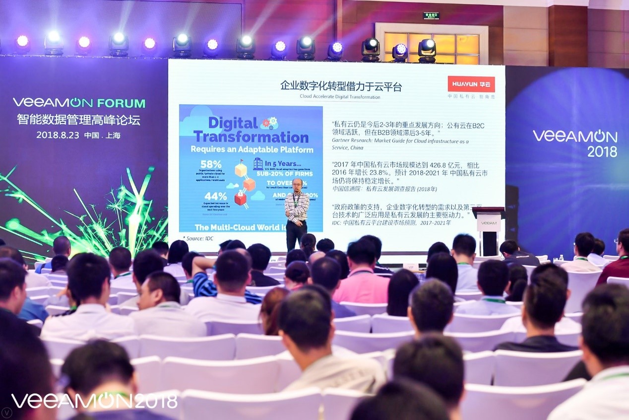 2018年8月23日,“激活,超可用未来始于当下”为主题的VeeamON Forum智能数据管理高峰论坛在上海举办。论坛上,华云数据作为Veeam在中国地区重要的合作伙伴,分享了云计算助力企业数字化转型的案例,华云数据生态战略以及基于数据存储和管理的解决方案。