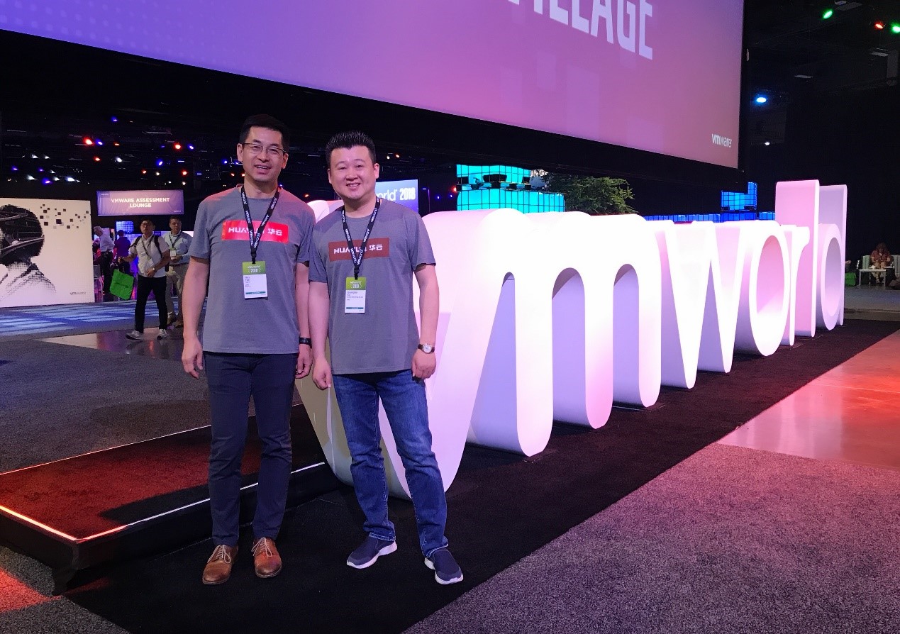 华云数据董事长、总裁许广彬(右)与执行副总裁、首席技术官谭瑞忠(左)受邀参加VMWorld 2018大会