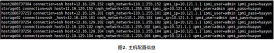 自动化集群配置具体实施分为:第一步:信息分类;第二步:基础信息配置;第三步:智能化配置。华云数据H2CI?超融合产品大规模集群自动化部署主机信息获取完成后,就已经为接下来的信息分类和基础信息配置工作打下了基础,结合OpenStack和Ceph的深度定制化开发,对配置部分的深度定制处理, 基于Ansible提供的底层部署能力,便可以轻松进行信息分类和基础信息配置:
