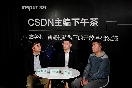 浪潮云计算产品部副总经理刘晓欣(中)OpenStack基金会个人独立董事王庆(右)CSDN内容运营副总编孙浩峰(左)