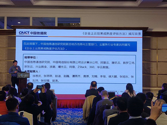 2018年企业上云推进会暨地方“十佳上云”企业评选启动会由工信部指导,中国信通院主办。《企业上云效果成熟度评估方法》是由工信部中国信通院权威发布的企业上云效果评估标准,由中国信息通信研究院联合地方信息化主管部门、云服务行业专家共同撰写的,起草单位包括中国信息通信研究院、阿里云、腾讯云、浪潮、华云数据等国内知名云服务厂商,是企业上云的最新标准和成果。