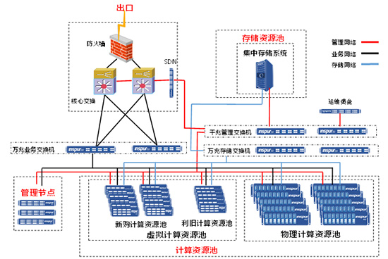 考虑到后期扩展需求考虑,浪潮方案采用松耦合的架构,计算、存储、网络、安全互相不依赖,都可以单独进行扩展,充分保证业务的灵活性和连续性。