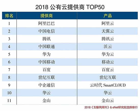 近日,在《互联网周刊》和eNet研究院权威发布“2018公有云提供商TOP50”榜单,华云数据凭借云计算基础设施、云服务和健全的云生态系统,位列榜单前十。