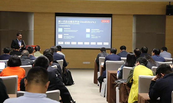 华云数据解决方案中心高级副总裁郭晓向与会者详细介绍了华云数据新一代企业云平台CloudUltra 4最新版本。
