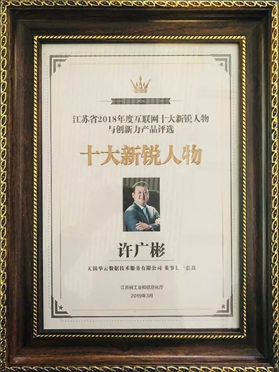 2019年3月29日,互联网十大新锐人物与创新力产品评选颁奖典礼在江苏省南京市雨花区楚翘城会议中心拉开帷幕,新锐人物候选人在现场接受企业家观察团和大众观察团的打分和投票。华云数据董事长、总裁许广彬凭借在中国云计算领域十几年如一日的拼搏和奋斗,受到现场评委和观察团成员的一致认可,高票当选2018年度十大“互联网新锐人物”。