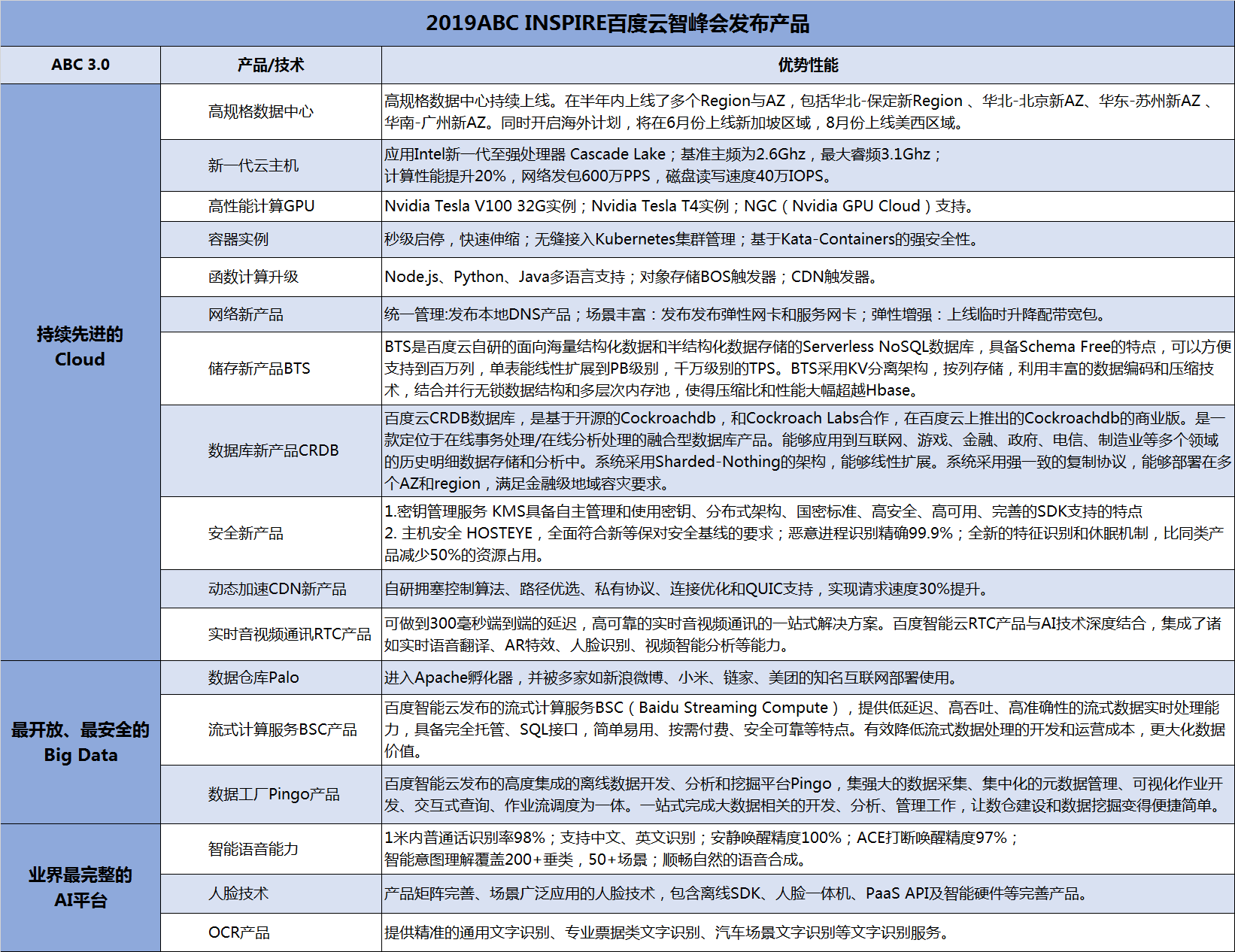 对于中国互联网行业,经历过PC时代、移动时代后,互联网智能化时代全面到来。围绕互联网智能化时代将会出现新的基础架构、新的安全管理、新的运营模式、新的业务布局,百度智能云在大会现场一口气推出了涉及主机、计算、网络、存储、数据库、安全等的14款ABC新产品,并升级百度智能视频平台和3大视频行业解决方案。