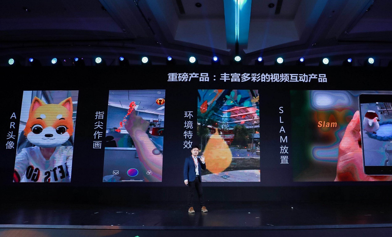 第三是最丰富多彩的视频互动产品,通过SLAM同步定位与地图构建实现AR头像、指间作画、环境特效,提升视频的趣味性。