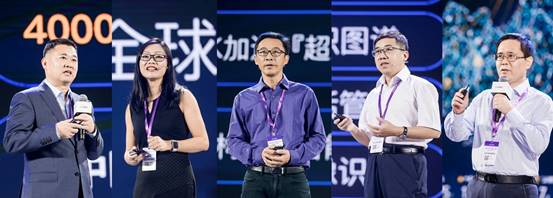 (百度智能云合作伙伴分享企业智能化升级故事,从左到右分别为吉诺汽车集团董事长贾小平、Dell全球供应链负责人黄畅唱、央视网总经理赵磊、国家电网有限公司客户服务中心董事长吴杏平、重庆市气象局局长顾建峰)