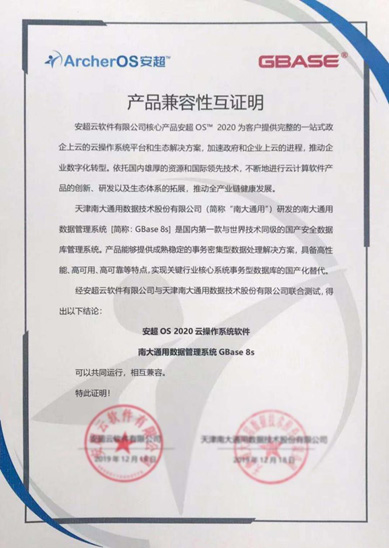 此次安超OS 2020与南大通用安全数据管理系统GBase 8s完成适配后,对于南大通用的用户来说,拥有了一个安全、稳定、可靠的云计算基础平台。而对于安超OS 2020的用户来说,南大通用安全数据管理系统GBase 8s是我国安全领域IT信息系统提供高安全、高效用、易使用、符合国家安全标准的事务型数据库,能够为其管理系统提供有力的安全支持,为业务安全、创新发展贡献力量。