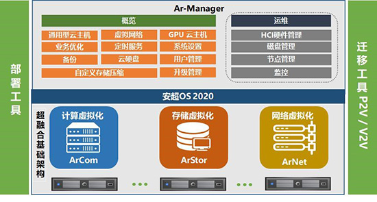 第二,上线超融合桌面云业务,部署安超 OS 2020-V的混合云管理平台,实现运管流程和业务模板的定制;
