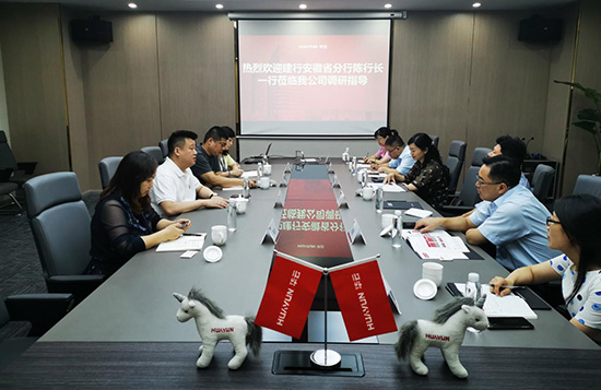 8月12日,中国建设银行安徽省分行党委委员、副行长陈光华,中国建设银行安徽省分行公司部总经理张鹏,中国建设银行安徽省分行审批部副总经理王刚,中国建设银行合肥分行副行长马红,中国建设银行庐阳支行行长吴雪峰等莅临华云数据参观调研。华云数据董事长、总裁许广彬,华云数据董事、首席财务官陆君,华云数据副总裁、安徽公司总经理朱珠等接待来访者。