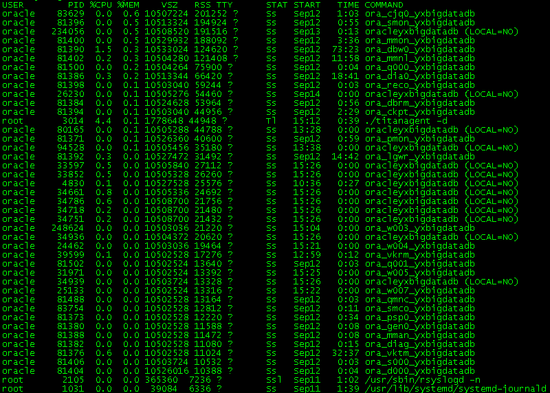 接着小伙伴查看了进程相关信息,如图二所示,发现所有进程占用都是零点几,没有超过1G的,13G的内存去哪里了?