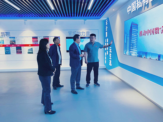 牛弩韬听取了华云数据的介绍,对华云数据在推动安徽信创产业发展所取得的突出成果表示充分肯定,对安徽省信创适配验证中心、信创云数据中心以及智能办公公共服务平台建设给予指导意见,并勉励华云数据要紧密把握数字新基建发展浪潮,不断加强自主创新,夯实技术根基,充分发挥“云基座”独特优势,为安徽数字经济快速发展注入更多新动能。