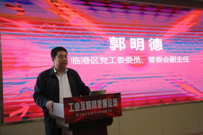 郭明德代表临沂临港经济开发区党工委、管委会致辞。他指出,今年的政府工作报告提出,“十四五”期间,要加快数字化发展,打造数字经济新优势,协同推进数字产业化和产业数字化转型。临沂临港区抢抓产业数字化、数字产业化发展新机遇,加快工业互联网发展,全面推动产业数字化转型升级,加快打造数字经济新高地,助力工业经济实现数字化、网络化、智能化。传统产业数字化转型升级是推进企业模式和企业形态根本性变革的强大引擎,是提升产业竞争力和实现产业现代化的根本性举措。临沂临港区坚定不移推进产业数字化与数字产业化,加快对传统产业的数字化、智能化升级,实现数字经济对传统产业的重塑,推动产业由“制造”向“智造”转变。本次工业互联网论坛暨传统产业数字化转型升级研讨会的召开,为临沂临港区不断深化对工业互联网创新发展的认识,加快推动工业互联网融通发展,加强工业互联网领域协同创新,支撑传统产业生产方式和企业形态根本性转变,提供了很好的平台。临沂临港区将充分发挥工业互联网平台对驱动数字经济发展的重要作用,全面推动传统产业数字化、网络化、智能化转型升级,加快建设工业互联网示范区和传统产业转型升级示范区。