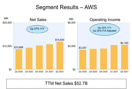 亚马逊云科技2021年第二季度收入超148亿美元,同比增长37%