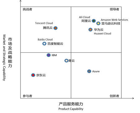 如下图所示,《2020~2021 年中国数据湖市场现状与发展趋势研究报告》按产品服务能力、市场及战略能力两个维度对诸多厂商进行了能力评估,亚马逊云科技具有显著优势。