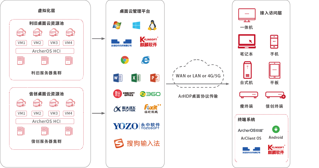安超桌面云在信创热潮背景下,是端到端的国产化全生态的桌面云解决方案。在流畅体验方面,基于强大的ArHDP协议,可以满足不同应用场景需求,为客户提供类似本地的体验。在高效易用方面,一体化平台提供从部署、上线到运维管理的全图形化工具,简单直观。操作部署均可以由管理员在管理平台批量完成,可统一进行部署,有效降低运维难度,提升运维效率。