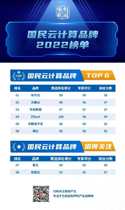 4月15日,业内权威自媒体《信创产业》公布了2022“国民云计算品牌”。华云数据凭借突出的技术优势及发展态势荣获“2022国民云计算品牌TOP3”。