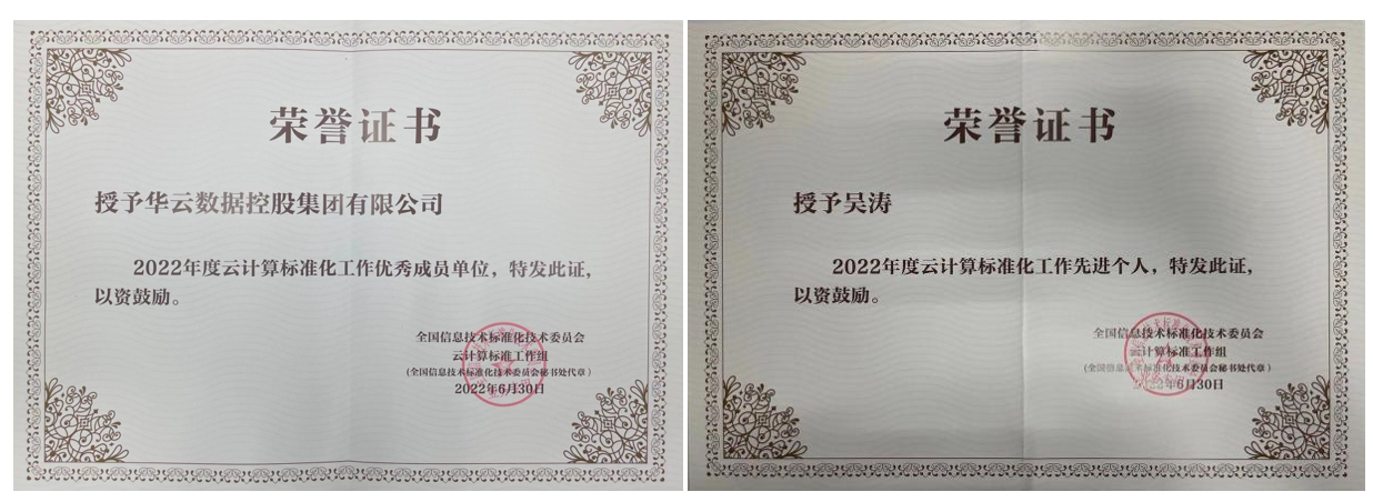 会上,全国信标委云计算标准工作组成立,华云数据成为云迁移专题组副组长单位。同时,华云数据荣获2022年度云计算标准化工作优秀成员单位,华云数据标准和生态发展部总监吴涛荣获2022年度云计算标准化工作先进个人。