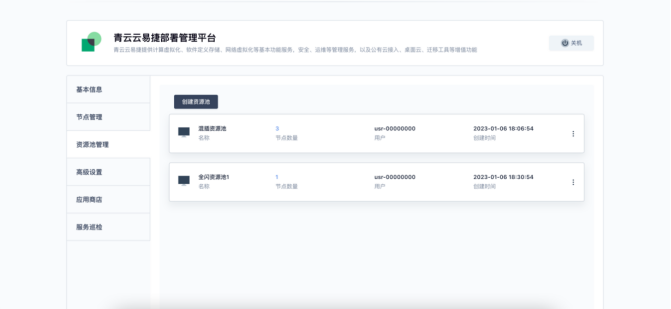 青云云易捷资源池管理界面