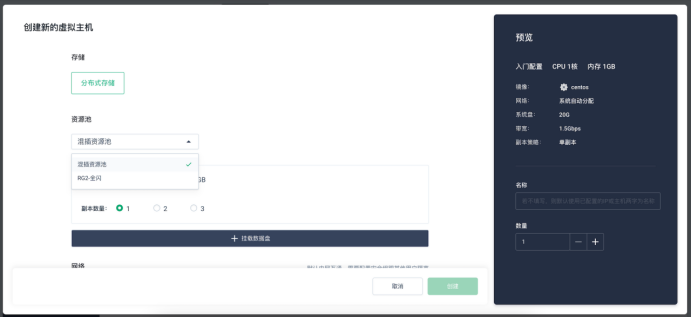 功能说明:支持多架构型号的服务器融合部署,提供统一管理的资源池平台。在新建虚拟机时,可自行指定虚拟机运行的资源池类型。