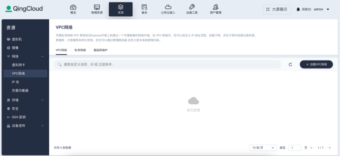 青云云易捷 VPC 网络管理页面