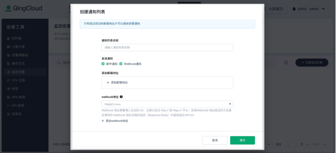 青云云易捷 webhook 配置页面