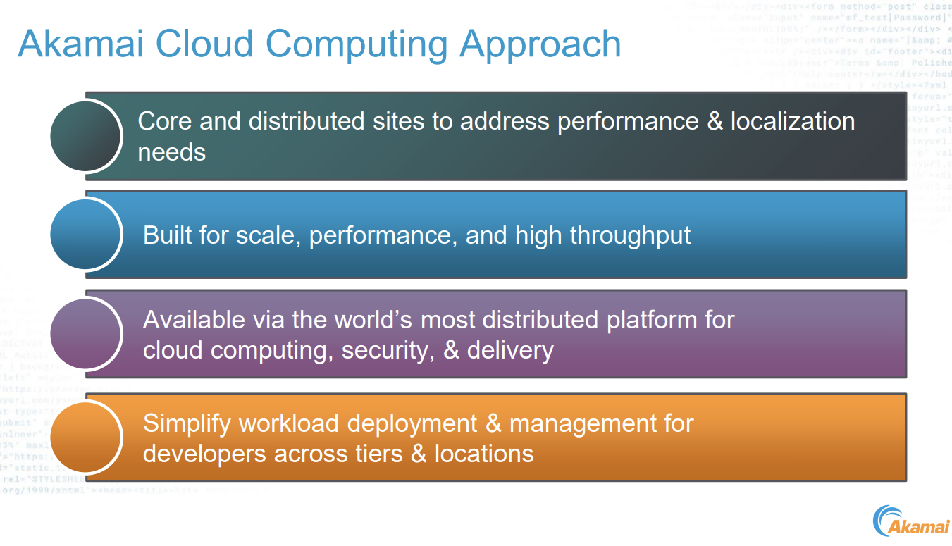 一,虽然云计算被日益广泛接受,新应用场景并没有得到充分满足,特别是距离使用者更近的场景,用户体验并不好,相较之下Akamai可以及时响应需求,在任何距离用户最近的地方运营程序。