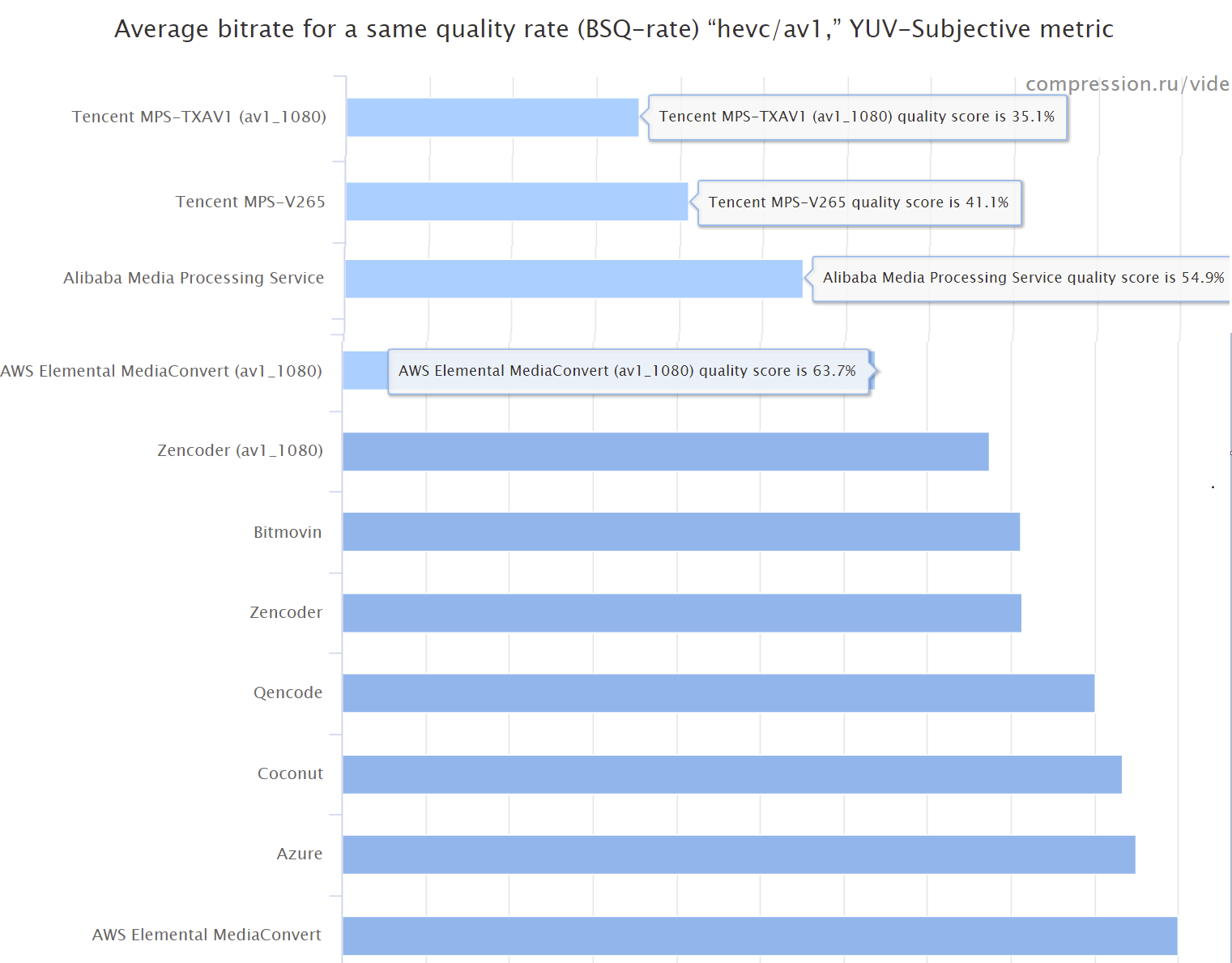 腾讯也在不断优化新一代AV1转码能力,本次比赛的主观赛道结果表明,在相同主观质量下,TXAV1可以比其他厂商节省至少35%的码率。
