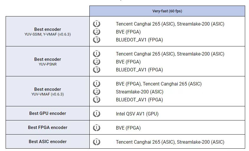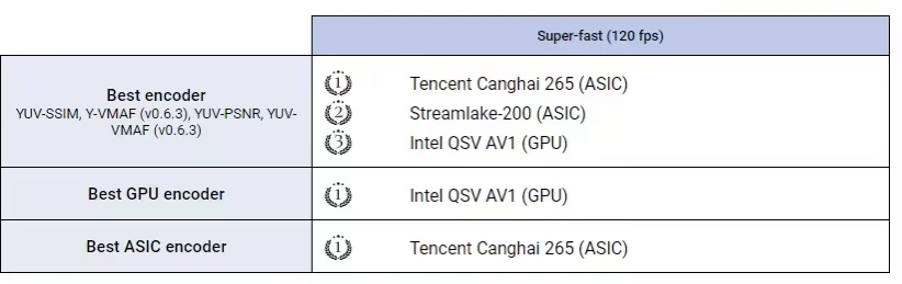 此次MSU大赛也揭晓了硬件视频编码比赛成绩,其中腾讯自研芯片沧海则包揽了参加的Very-fast (60 fps)以及Super-fast (120 fps)两个赛道8项评分的全部第一。在不同的高帧率场景下,沧海底层架构始终保持同等水准的高压缩效率。实测结果显示,在同码率下,相较于业界GPU等标品硬件,沧海可大幅改善视频质量;在120fps的高帧率档位上,在同等质量下,能比行业领先水平再节省10%以上的码率。