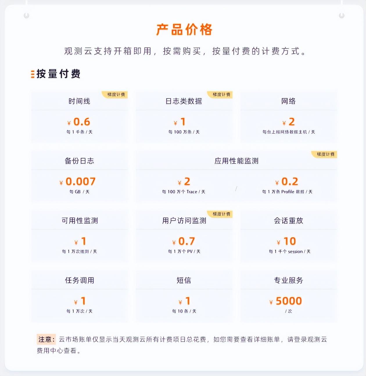 观测云作为中国第一款 SaaS 可观测服务平台,自面世起就支持按量计费模式,按天出账。