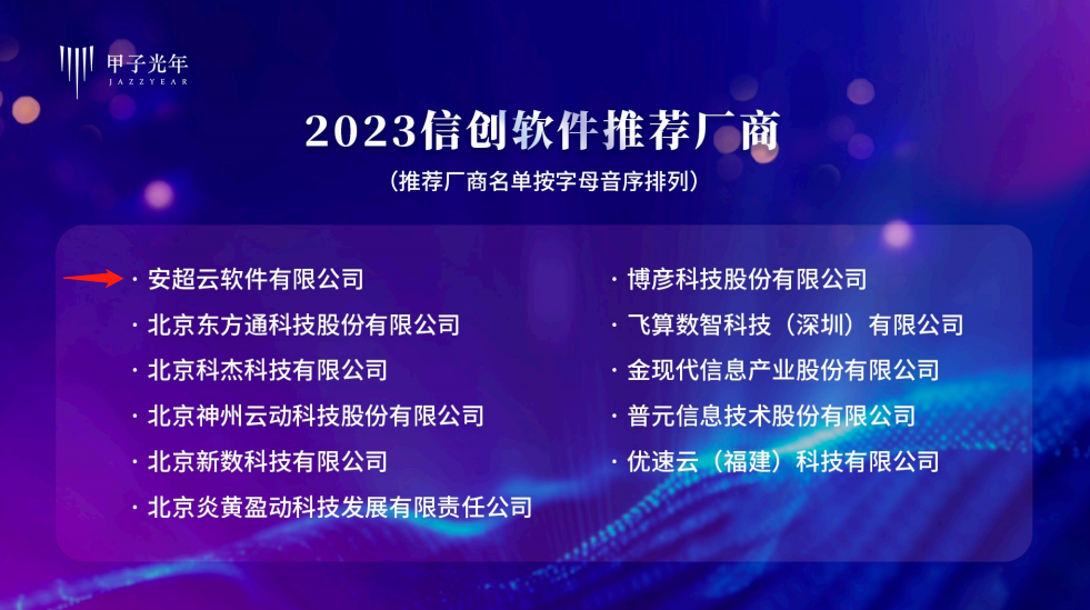甲子光年《信创软件品牌影响力研究报告》发布 安超云被评为“2023信创软件推荐厂商”