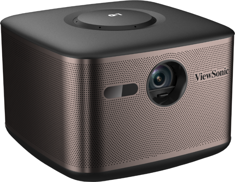 全新的优派Q7+采用球面玻璃镜片,让画面稳定不变形,有效降低色散,;搭载了专业投影机使用的中置镜头设计,彰显专业的同时可轻松通过镜头盖开关机,方便用户调试;Q7+还拥有不俗的外观颜值,古铜金的色彩搭配纯金属的机身设计,具有现代品质感,完美贴切现代家居时尚生活理念。