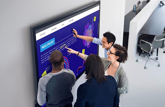 而显示器是实现更智能、更快速协作的关键助力设备。例如,具有触屏功能的大型交互式显示器通过支持各类协作需求来提高会议效率。比如员工可以通过不同的应用程序进行互动交流,或者在同屏共享的演示文稿或文档上进行注释。