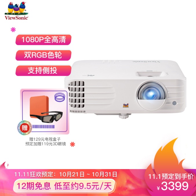 双十一期间,家用旗舰投影PX727HD优惠价格为3399元,下单即赠价值129元的智能电视盒子。以全能色彩著称的PX727HD采用了高压汞灯,持续输出2000 ANSI流明的亮度,稳定投射清晰的影像画面;12000:1的对比度轻松显示层次分明的色彩。优派PX727HD采用SuperColor炫彩技术,内置6倍速RGBRGB色轮,带来100%Rec.709色域全覆盖,色彩表现力大幅提升;采用SonicExpert炫音技术,10W高品质喇叭声音清晰、悦耳动听;在SuperEco+节能模式下,PX727HD还可以提供长达20000小时的影音陪伴,帮助用户使用方便,节能省心。