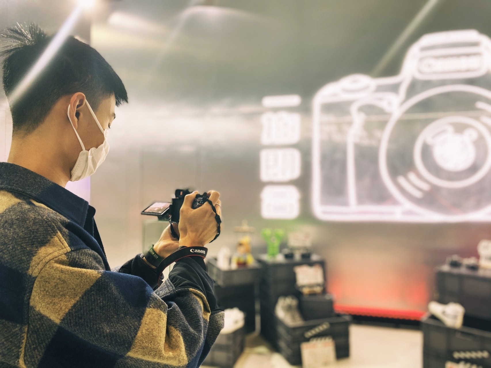 在相机状霓虹灯墙下,佳能的新款全画幅专微旗舰相机EOS R5、全新上市的微单EOS M50 Mark II,以及网红Vlog相机Powershot G7 X Mark III等,与潮流单品一同亮相展台,充满青春活力。霓虹环绕,复古、新潮、经典、个性尽数收入取景框中,成为了全场观众必去的打卡地,现场活动Coser与知名网络红人纷纷慕名前来,不放过这一与潮流影像“共影”的大好机会。