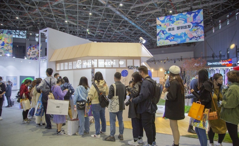 观众在machimachi奶茶店前排起长队,等待体验佳能炫飞SELPHY CP1300打印机