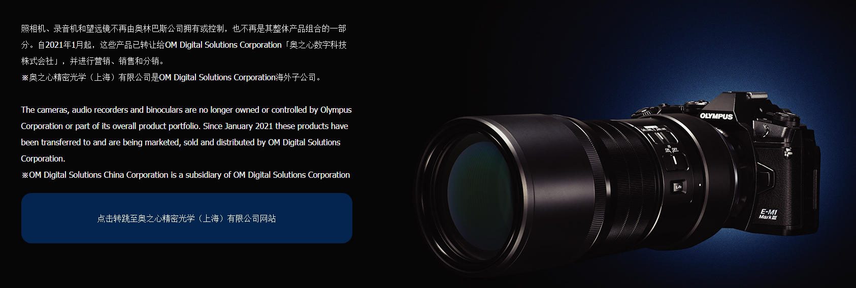据奥林巴斯官方消息,奥林巴斯株式会社已在2021年1月1日完成奥林巴斯映像事业转让程序,转让完毕后,将由OM Digital Solutions Corporation(奥之心数字科技株式会社)继承奥林巴斯映像事业。