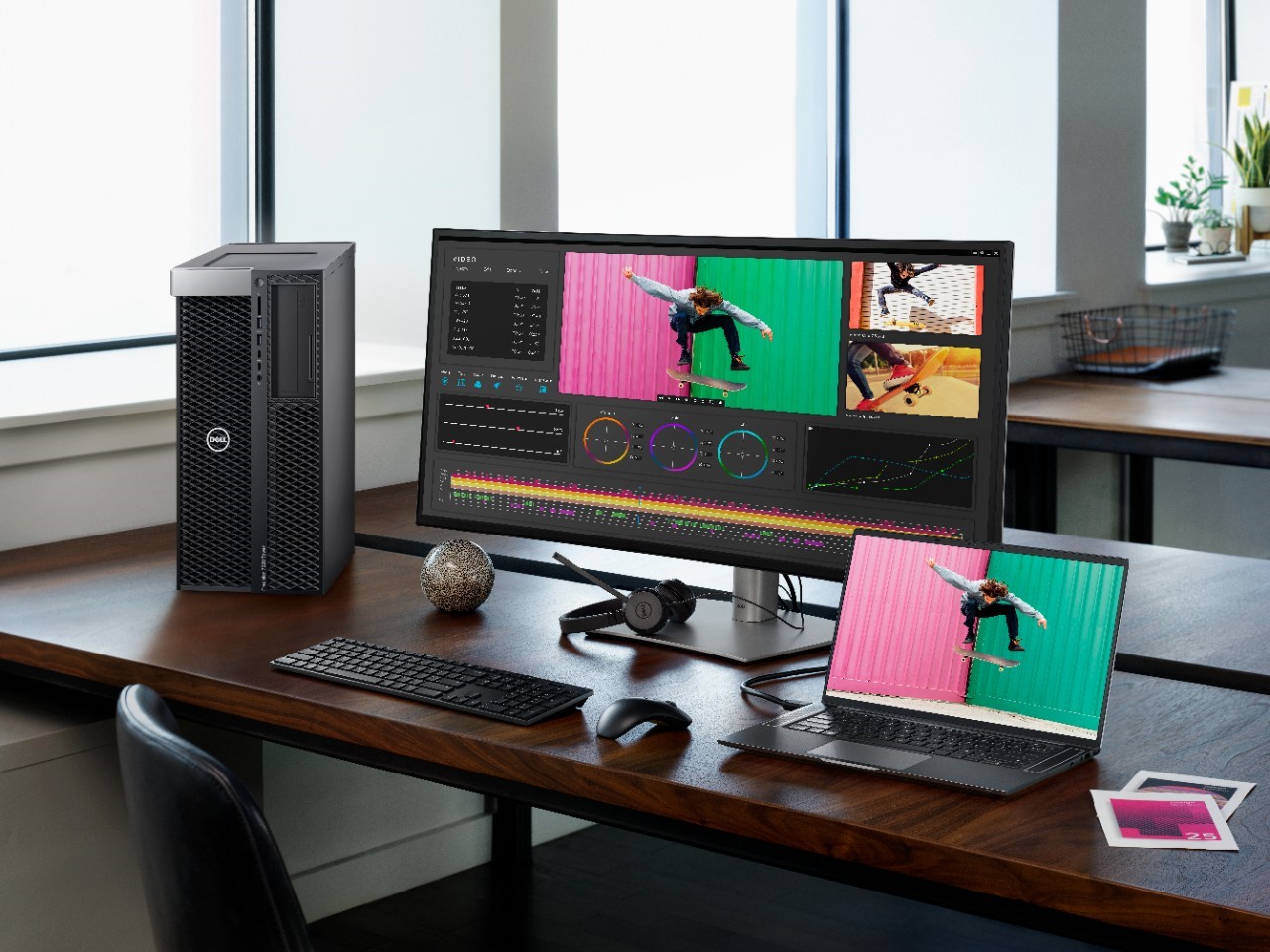以Latitude 9520/Precision 7920搭配戴尔UltraSharp 40曲面WUHD显示器构建的创意行业工作者办公区