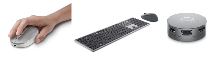 戴尔Premier可充电无线鼠标、戴尔Premier多设备无线键盘鼠标、戴尔USB-C移动适配器