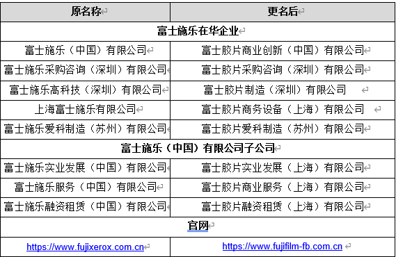 附:富士施乐在华企业、富士施乐(中国)各分支机构及下属企业更名信息: